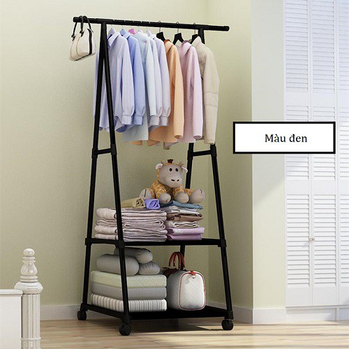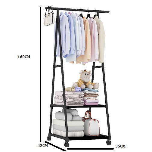 - Kệ treo quần áo chữ A 3 tầng 2 ngăn ngoài treo quần áo, túi xách sản phẩm còn thuận tiện để các loại chăn màn, giày dép... .