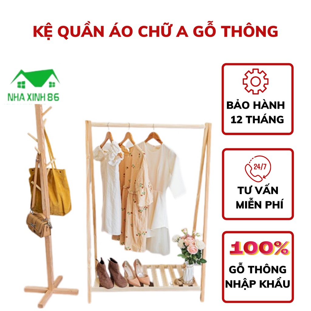 Kệ treo quần áo chữ A bằng gỗ thông 1 tầng l Giá treo quần áo chữ A 1 tầng gỗ cao cấp, chống mối mọt, ẩm mốc