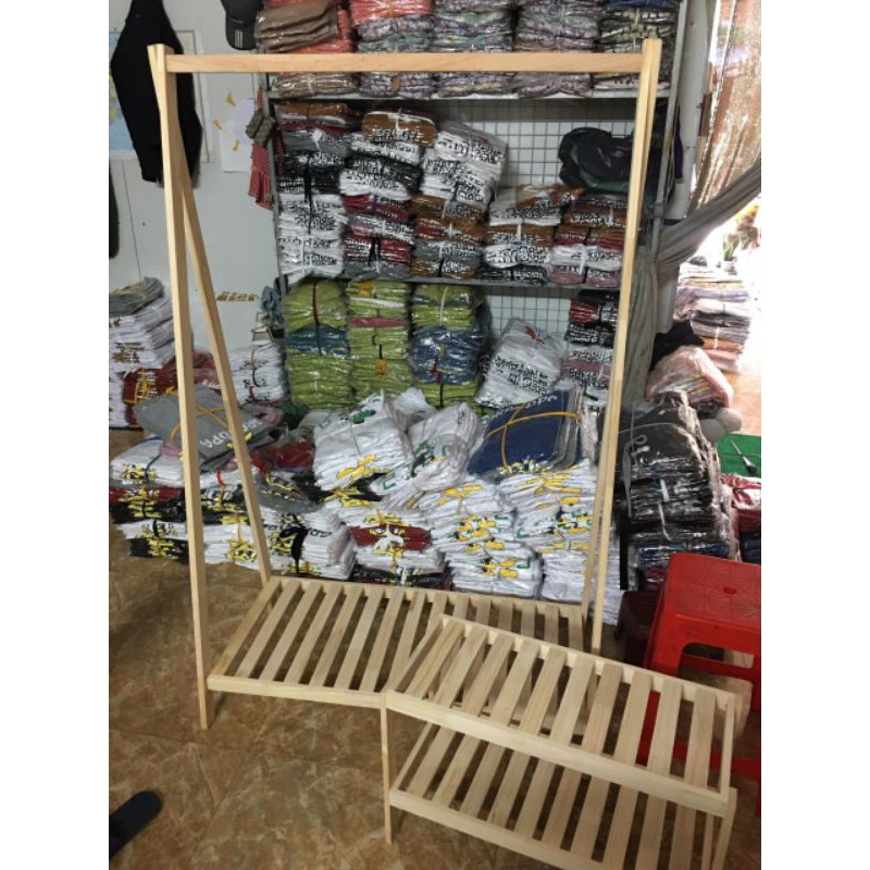 Kệ treo quần áo chữ A bằng gỗ thông 1 ngăn(freeship xtra)