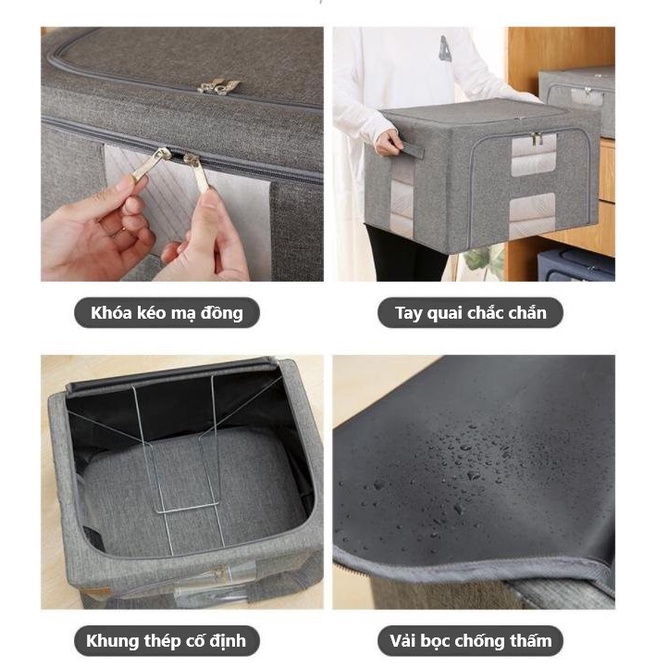 - Chất liệu vải dầy dặn chống thấm giúp bảo vệ quần áo, đồ đạc bên trong khỏi ẩm, mốc