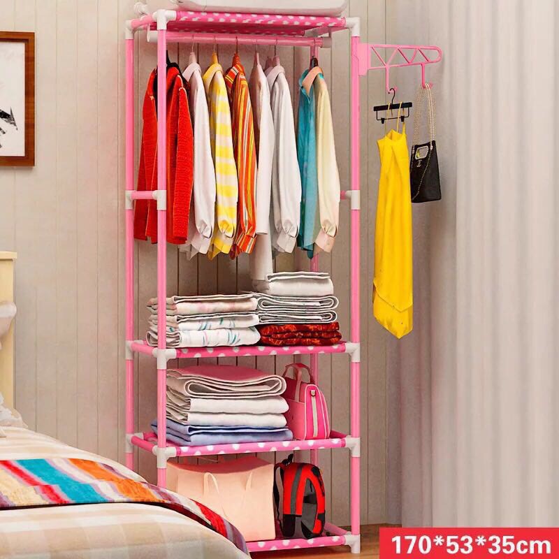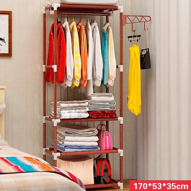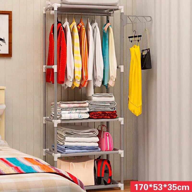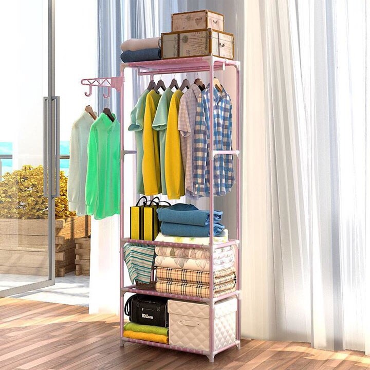 ❸ Khung sắt sơn tĩnh điện chắc chắn, cao rộng treo được nhiều đồ có thêm tầng để đựng vali du lịch, Quần Áo bò…
