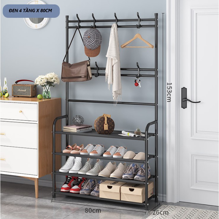- Kệ thiết kế gồm 2 ngăn 4 tầng giúp sắp xếp nhiều đồ dùng, quần áo gia đình.