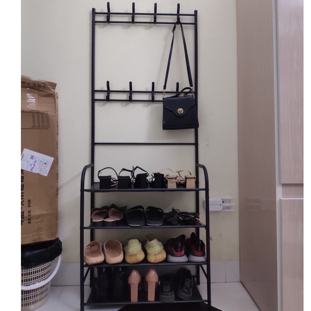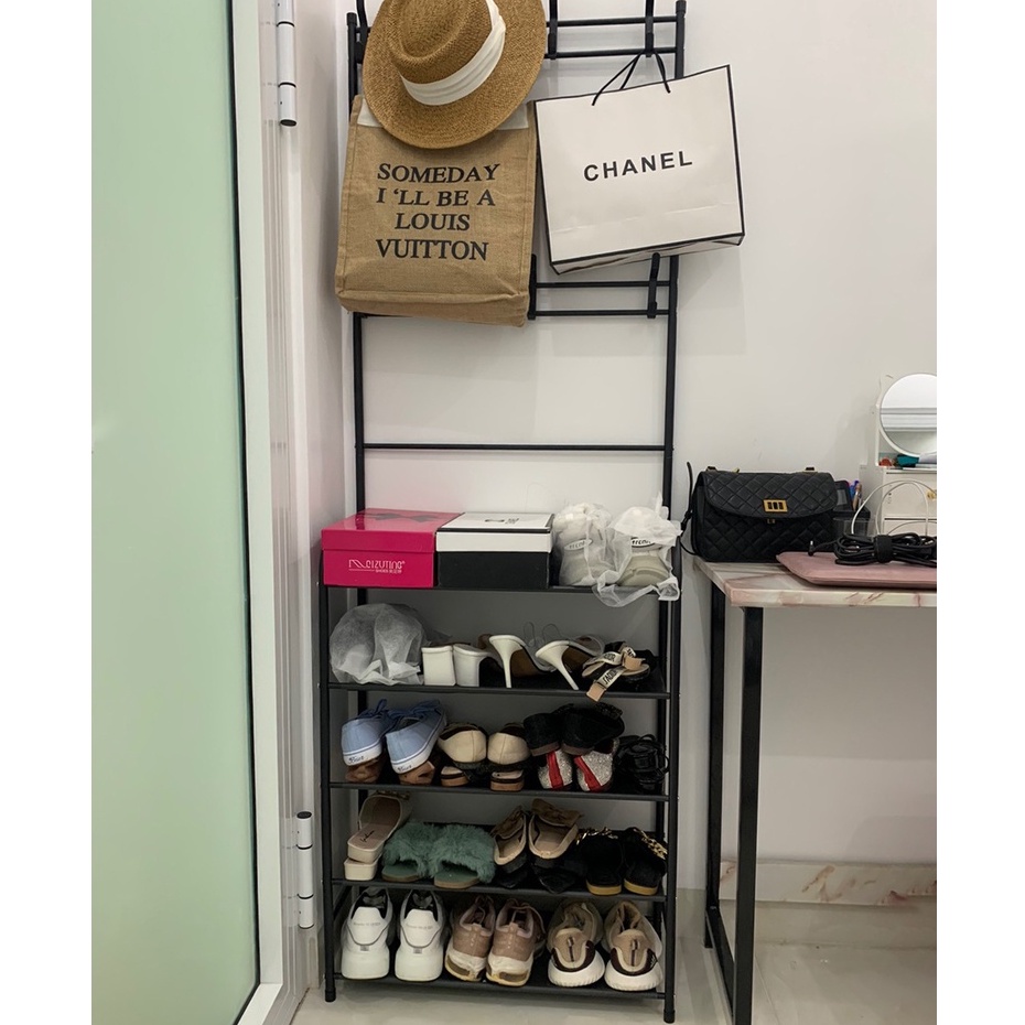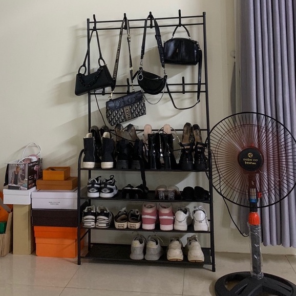 -Kệ được thiết kế chữ H với 2 tầng dưới giá thép để giày dép hoặc phù hợp quần áo gấp