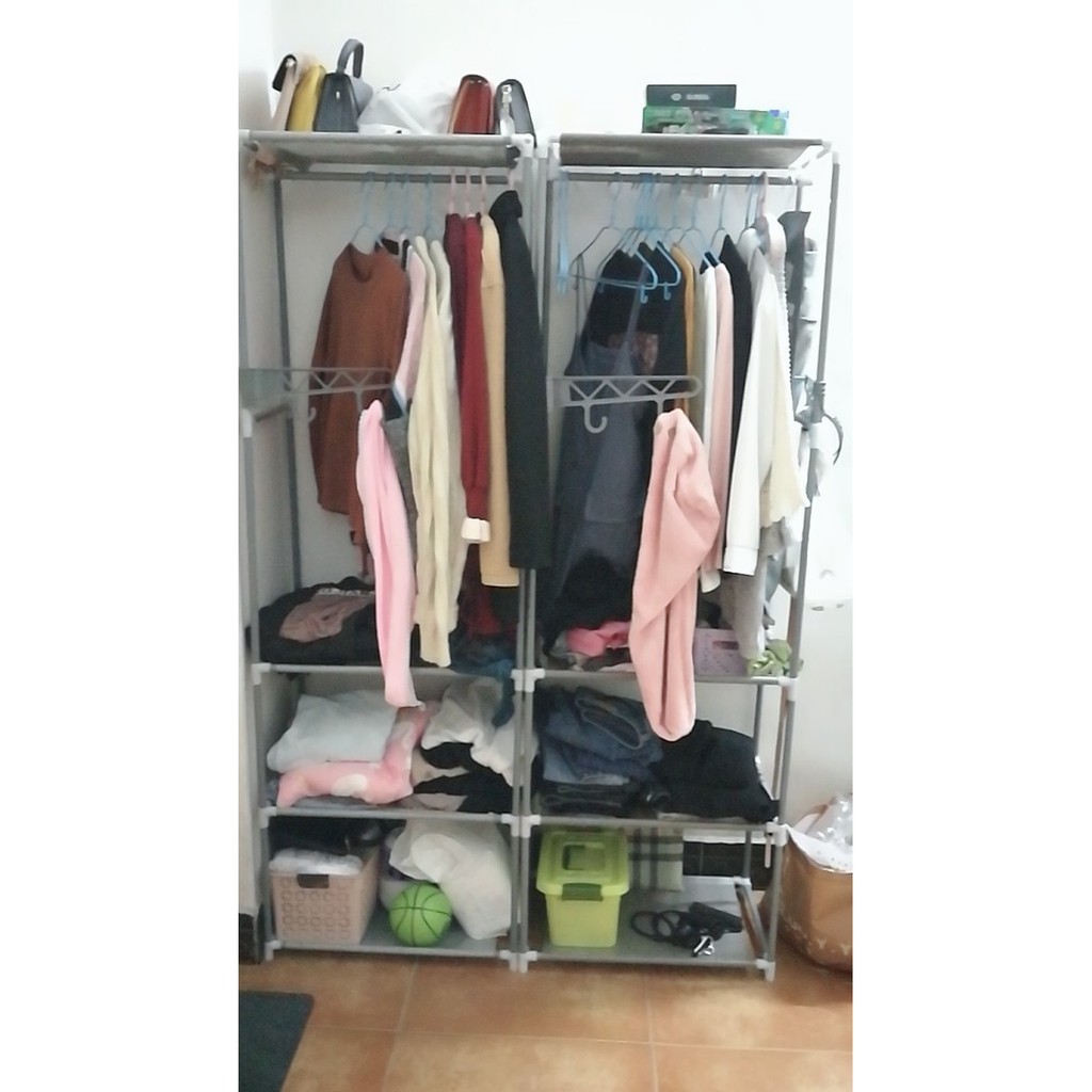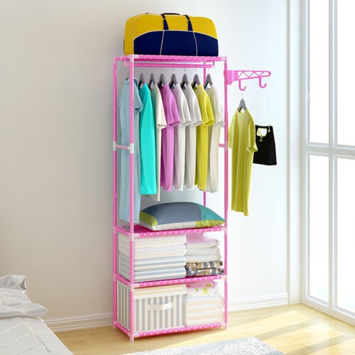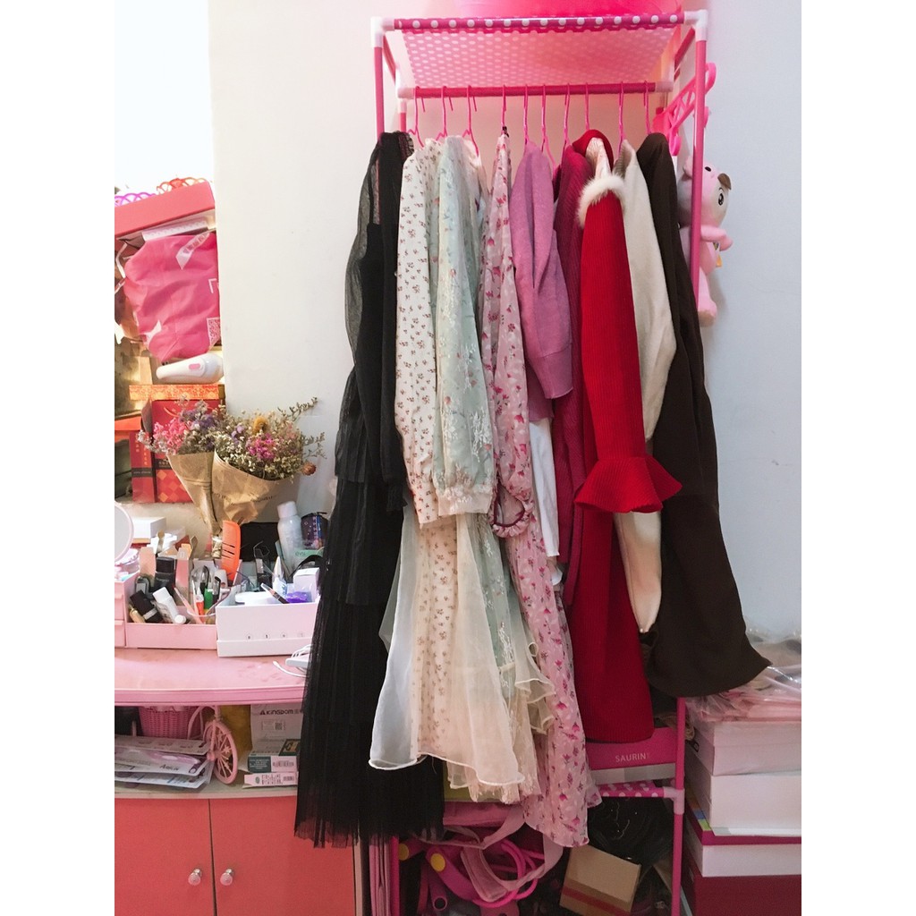 ❸ Khung sắt sơn tĩnh điện chắc chắn, cao rộng treo được nhiều đồ có thêm tầng để đựng vali du lịch, Quần Áo bò…
