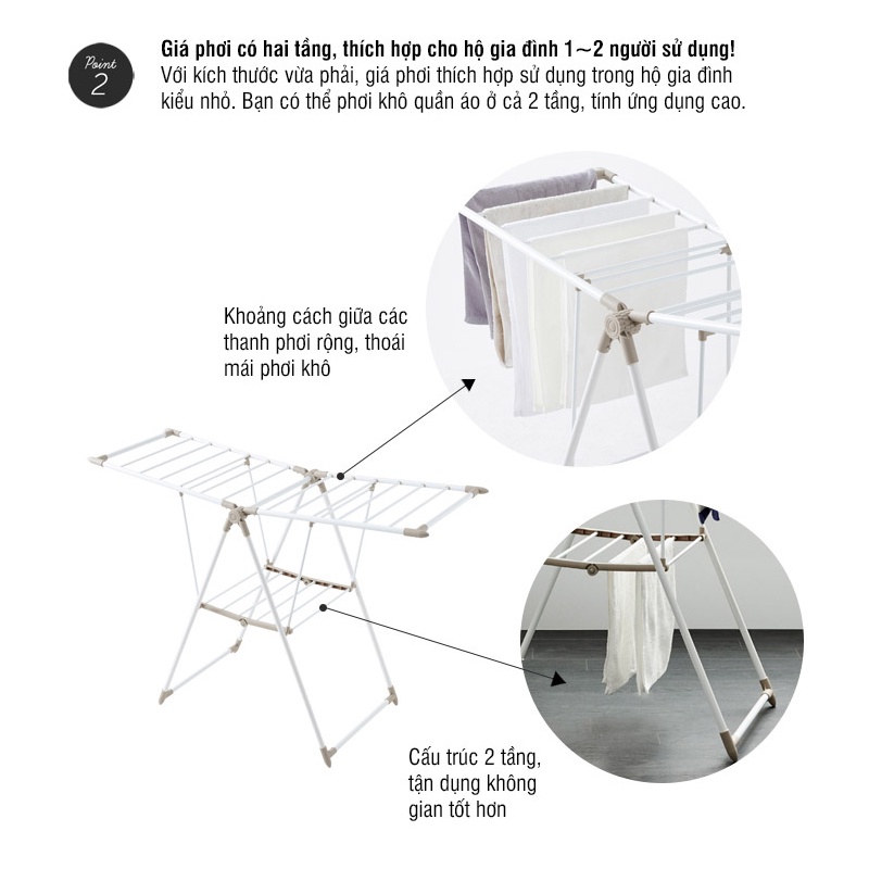 💖Với kích thước vừa phải, giá phơi thích hợp sử dụng trong hộ gia đình kiểu nhỏ. Bạn có thể phơi khô quần áo ở cả 2 tầng, tính ứng dụng cao.