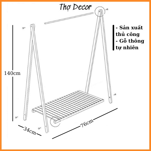 - Kệ Treo Quần Áo, Giá Treo Quần Áo Chữ A 1 Tầng Gỗ Thông lắp ráp tháo rời đóng hộp, kèm phụ kiện lắp đặt