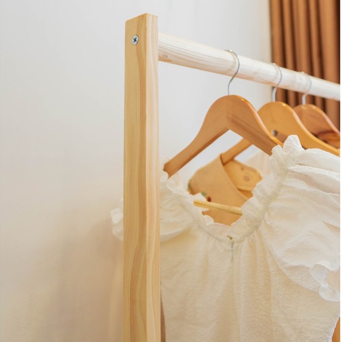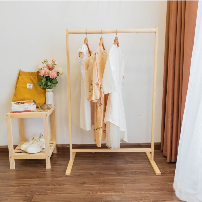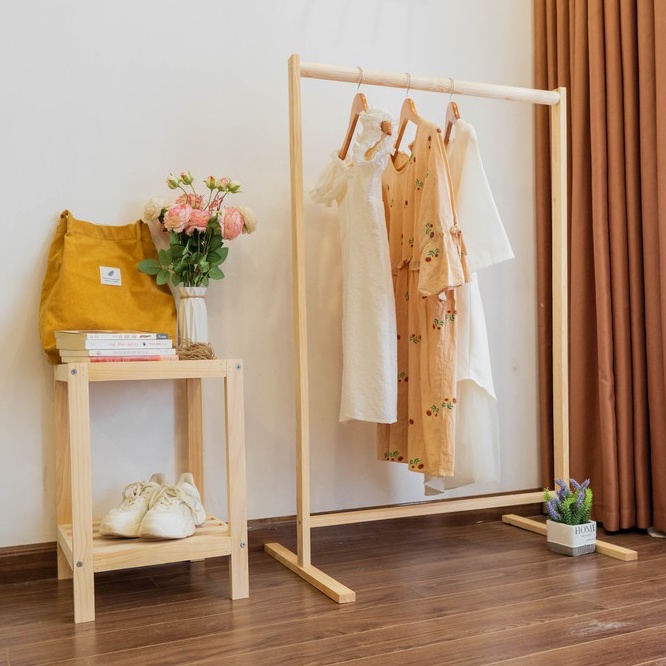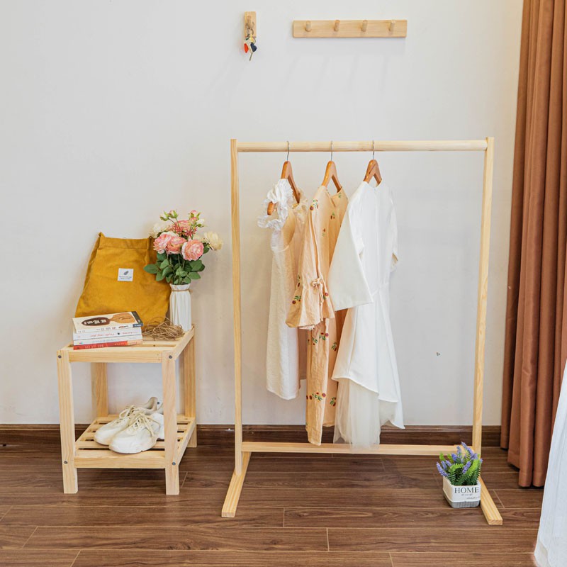 - Kệ Treo Quần Áo Gỗ Thanh Đơn dùng để treo và cất giữ quần áo trong phòng ngủ thay thế tủ đồ.