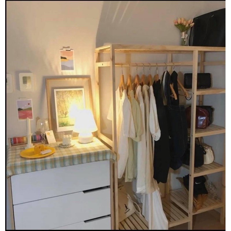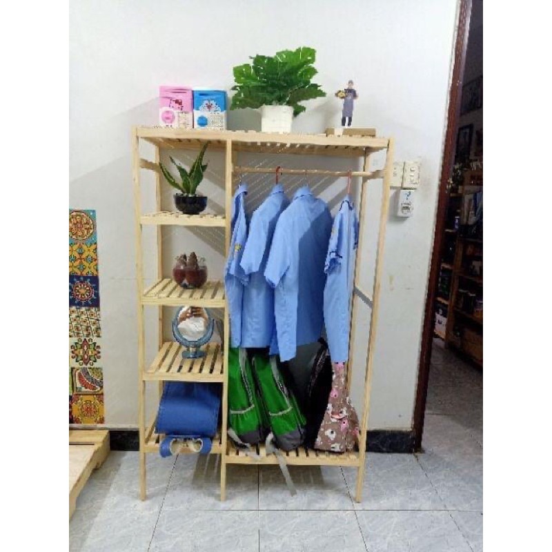 Nhà cửa & Đời sống > Dụng cụ chăm sóc nhà cửa > Dây phơi & giá phơi quần áo || Kệ treo quần áo gỗ thông nhập khẩu - Tủ treo quần áo gỗ thông 2 ngănCòn hàng