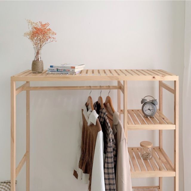 Kệ treo quần áo gỗ thông nhập khẩu - Tủ treo quần áo gỗ thông 2 ngăn