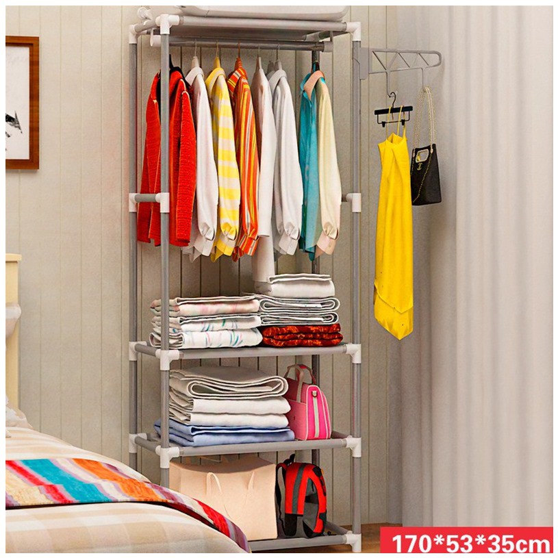👉Kệ treo quần áo hình chữ H 4 tầng 3 ngăn có giá treo đa năng Ngoài để quần áo, sản phẩm còn thuận tiện đặt để các loại chăn màn, túi xách, giày dép…