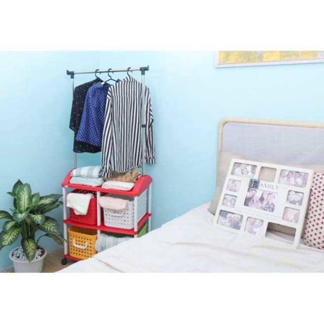 Kệ treo quần áo có thiết kế thông minh, linh hoạt với kiểu dáng đơn giản phù hợp với mọi không gian nhà bạn, dùng để treo quần áo và đựng vật dụng.
