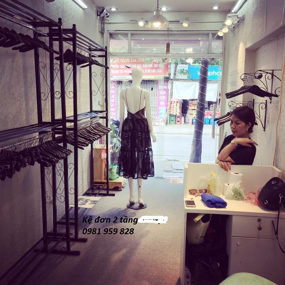 Kệ treo shop thời trang, Kệ đơn 2 tầng treo quần áo