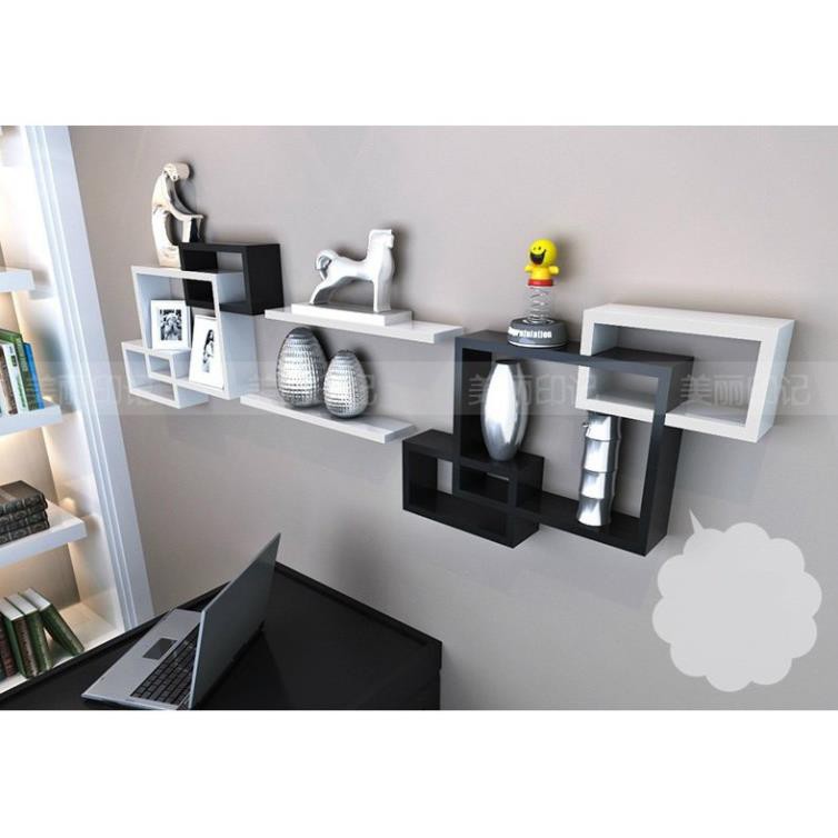 Kệ treo tường 1 bộ chữ nhật lồng màu đen và 2 thanh ngang trắng FREE SHIP 99K (vthm9)