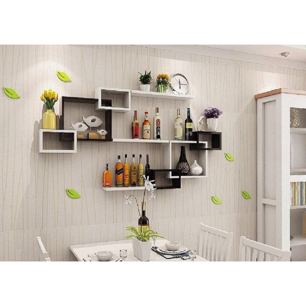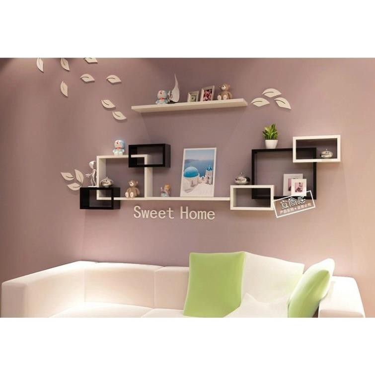 Bộ kệ treo tường chữ nhật ô vuông và thanh ngang tạo điểm nhấn cho góc tường trở nên xinh động và hấp dẫn hơn bao giờ hết.