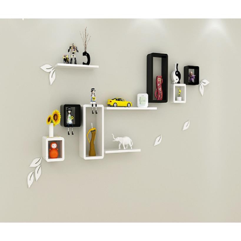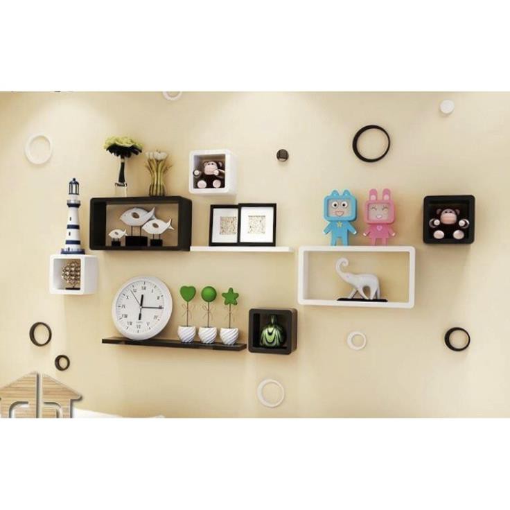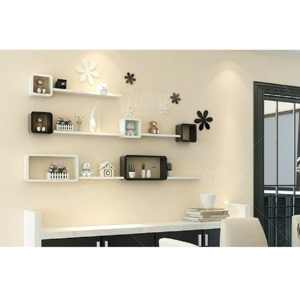 Nhà cửa & Đời sống > Nội thất > Kệ & Giá || Kệ treo tường 2 bộ ô vuông chữ nhật và 2 thanh ngang đen trắng FREE SHIP 99K (vthm9)Còn hàng