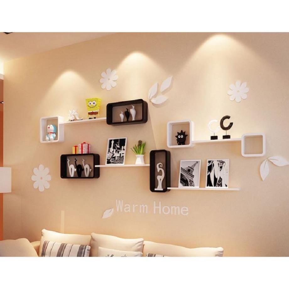 Bộ kệ gỗ trang trí ô vuông chữ nhật tạo điểm nhấn cho góc tường trở nên xinh động và hấp dẫn hơn bao giờ hết.