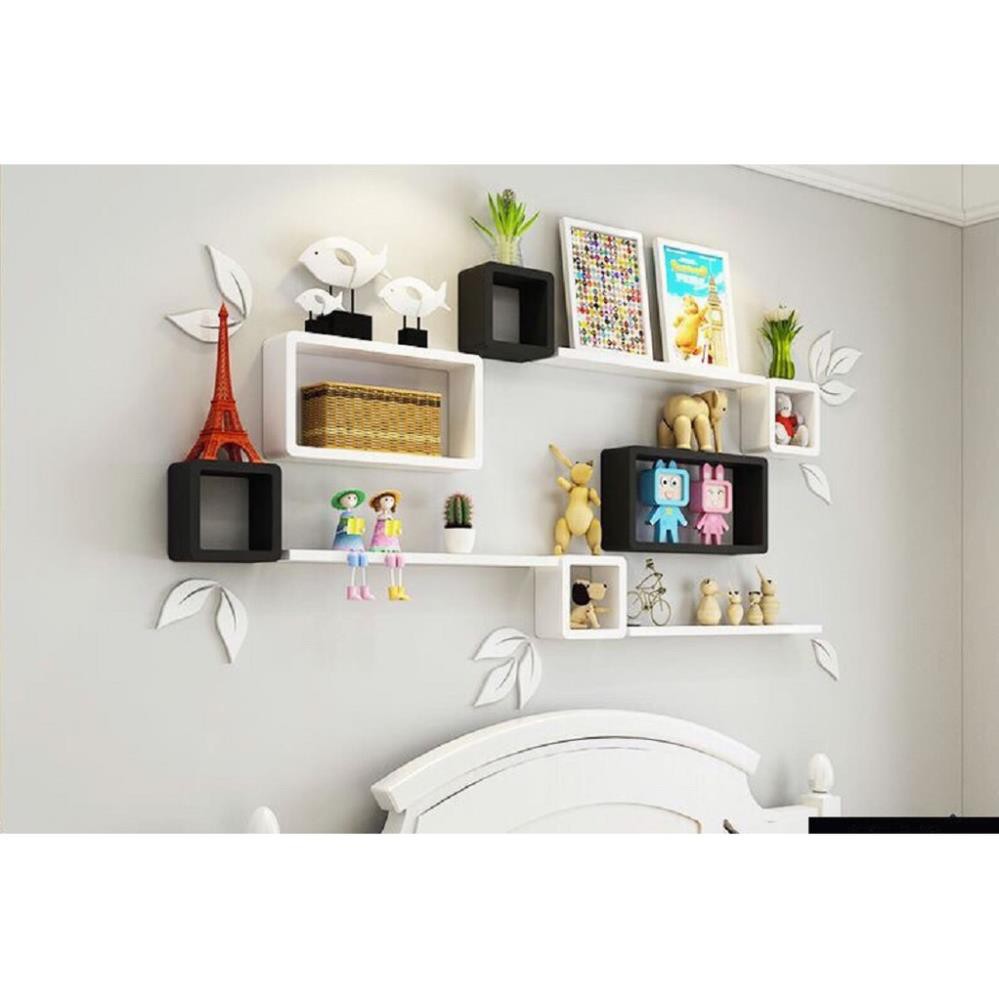 Kệ treo tường 2 bộ ô vuông chữ nhật và 2 thanh ngang đen trắng FREE SHIP 99K (vthm9)