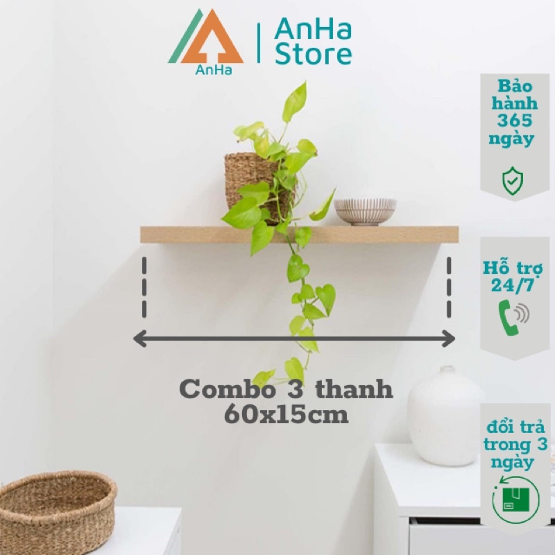 Nhà cửa & Đời sống > Nội thất > Kệ & Giá || Kệ treo tường 3 thanh 60x15cm giá tại xưởng 150kCòn hàng