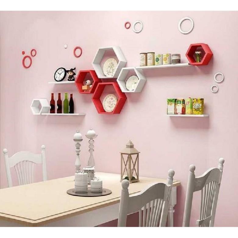 Nhà cửa & Đời sống > Nội thất > Kệ & Giá || Kệ treo tường 6 lục giác(trắng-đỏ) và 2 thanh ngang trắng 50x13 FREE SHIP 99K (vthm9)Còn hàng