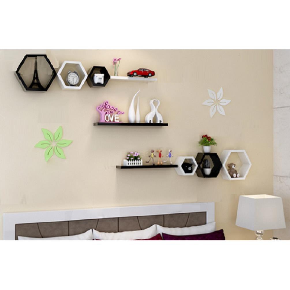 Giới thiệu Kệ treo tường 6 ô lục giác ( Đ- T)và 2 thanh ngang trắng 50x13 FREE SHIP 99K (vthm9)