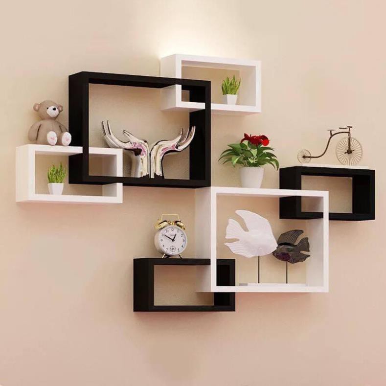 Bộ kệ treo tường chữ nhật ô vuông và thanh ngang tạo điểm nhấn cho góc tường trở nên xinh động và hấp dẫn hơn bao giờ hết.
