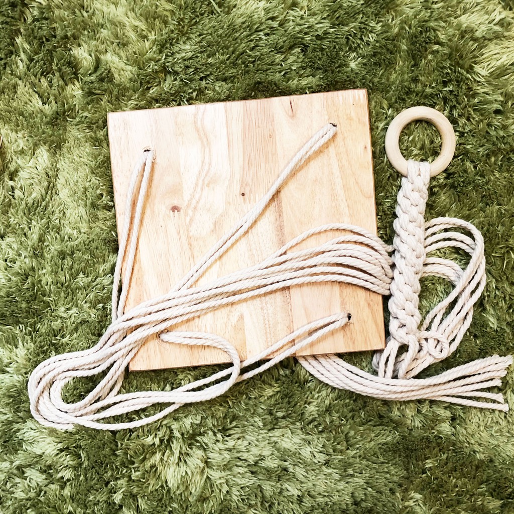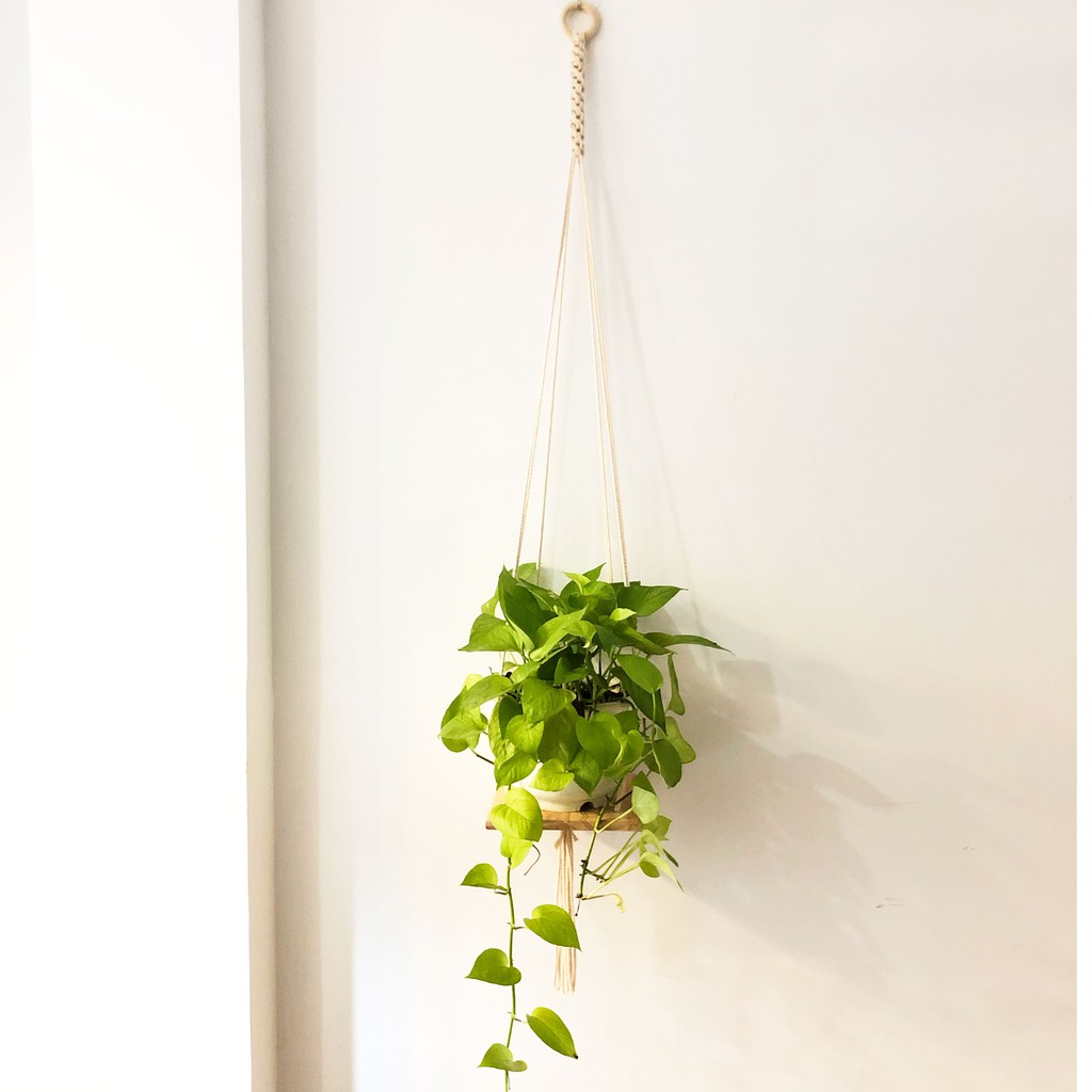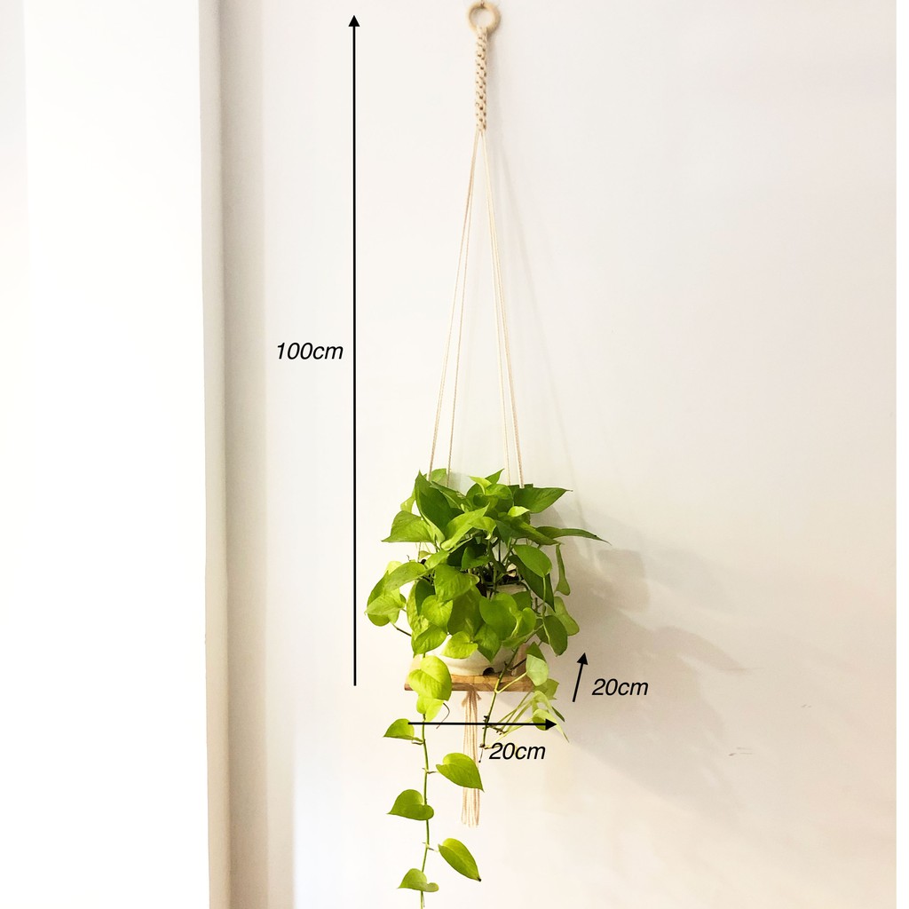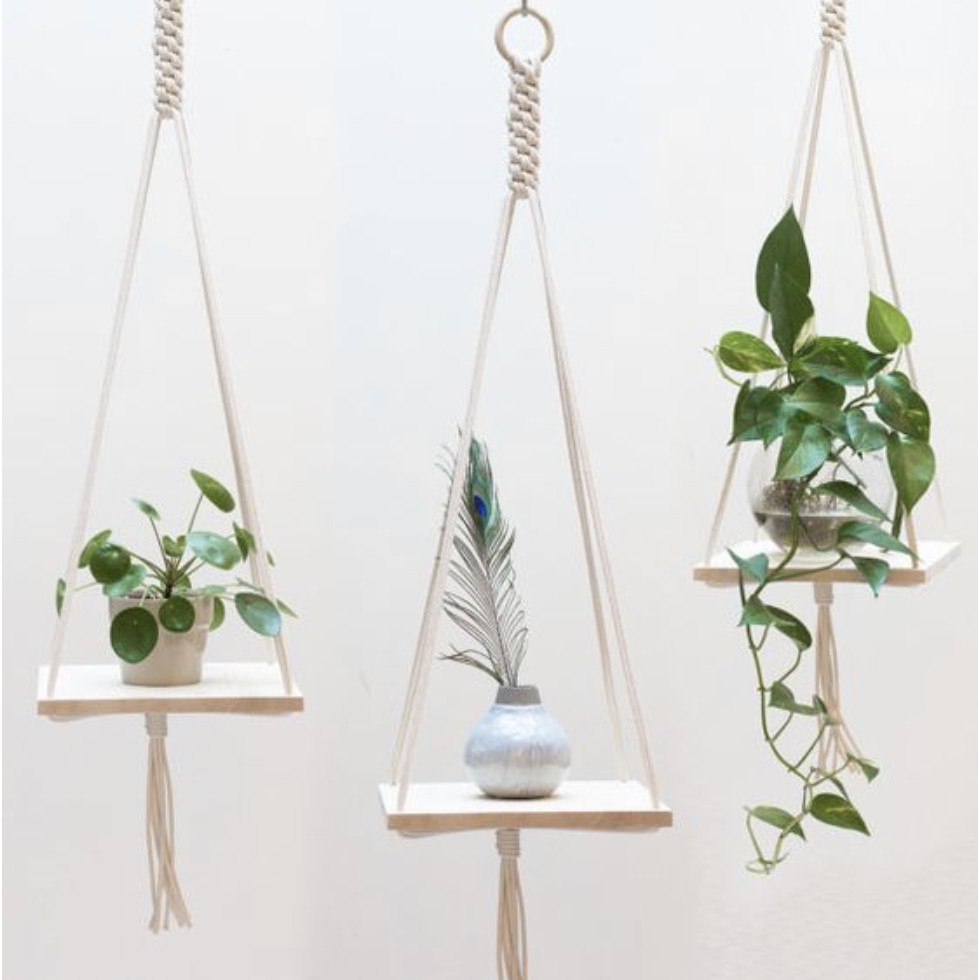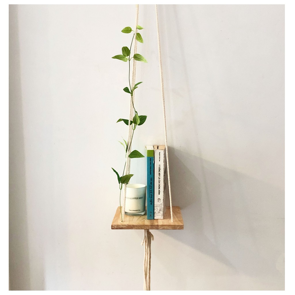 Nhà cửa & Đời sống > Nội thất > Kệ & Giá || Kệ treo tường để sách chậu hoa Macrame (gỗ tự nhiên 20x20cm, dây cotton)Còn hàng