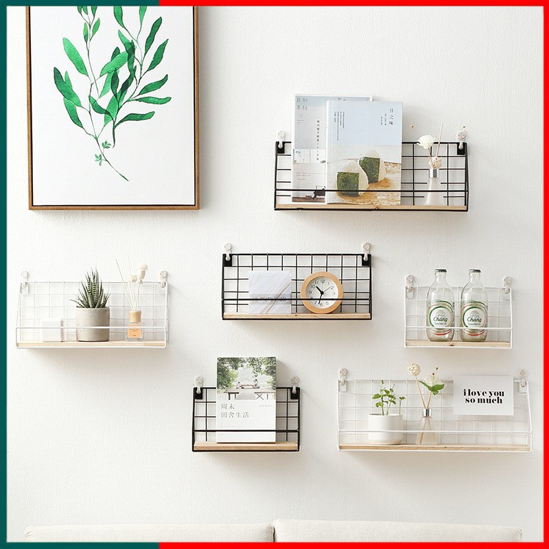 Nhà cửa & Đời sống > Nội thất > Kệ & Giá || Kệ Treo Tường Decor Để Đồ Đa Năng, Kệ Sắt Đáy Gỗ Có Rào Chắn Tặng Kèm Đinh Hoặc Miếng Dán TườngCòn hàng