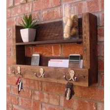 Kệ treo tường decor kèm treo móc khóa HPKTT 12| Kệ decor gỗ thông vintage
