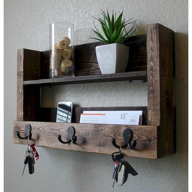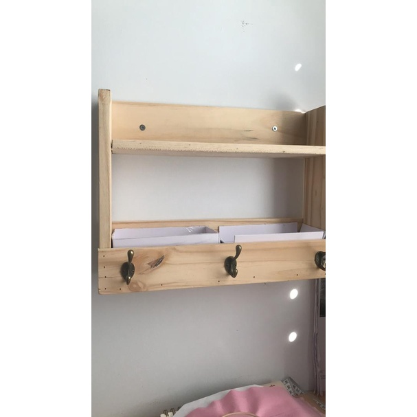 Nhà cửa & Đời sống > Nội thất > Kệ & Giá || Kệ treo tường decor kèm treo móc khóa HPKTT 12| Kệ decor gỗ thông vintageCòn hàng