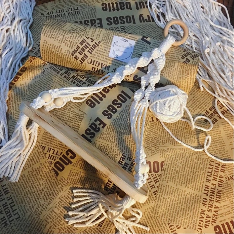 Bộ sản phẩm: Gồm Kệ, dây thừng đã được tết sẵn, khoen gỗ, đinh treo.