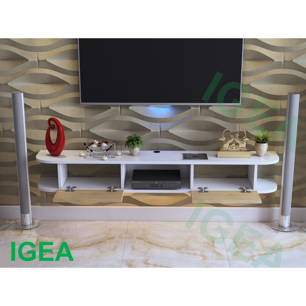 [Mã LIFEBKA5 giảm 10% tối đa 1 Triệu đơn 500k] Kệ treo tường tivi hiện đại 2 ngăn thương hiệu IGA, tay nắm gỗ GP40
