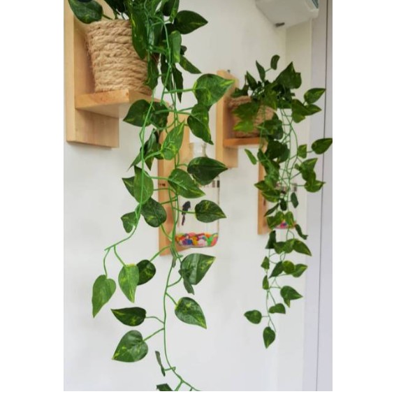 giá treo kệ treo cây cảnh trong nhà kệ để đồ lưu niệm gỗ tự nhiên dây treo không cần khoan tườngdài 30 cm rộng 10 cm cao 10cm