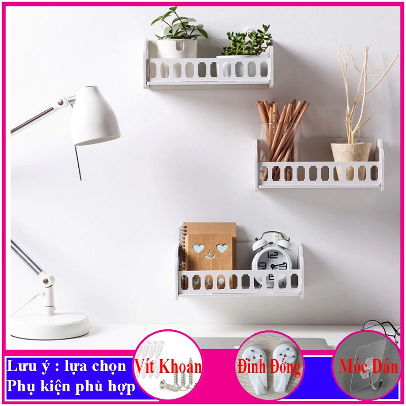 Nhà cửa & Đời sống > Nội thất > Kệ & Giá || Kệ treo tường trang trí không cần khoan, chất liệu gỗ nhựa cao cấp màu trắng, decor không gian sống - a22Còn hàng
