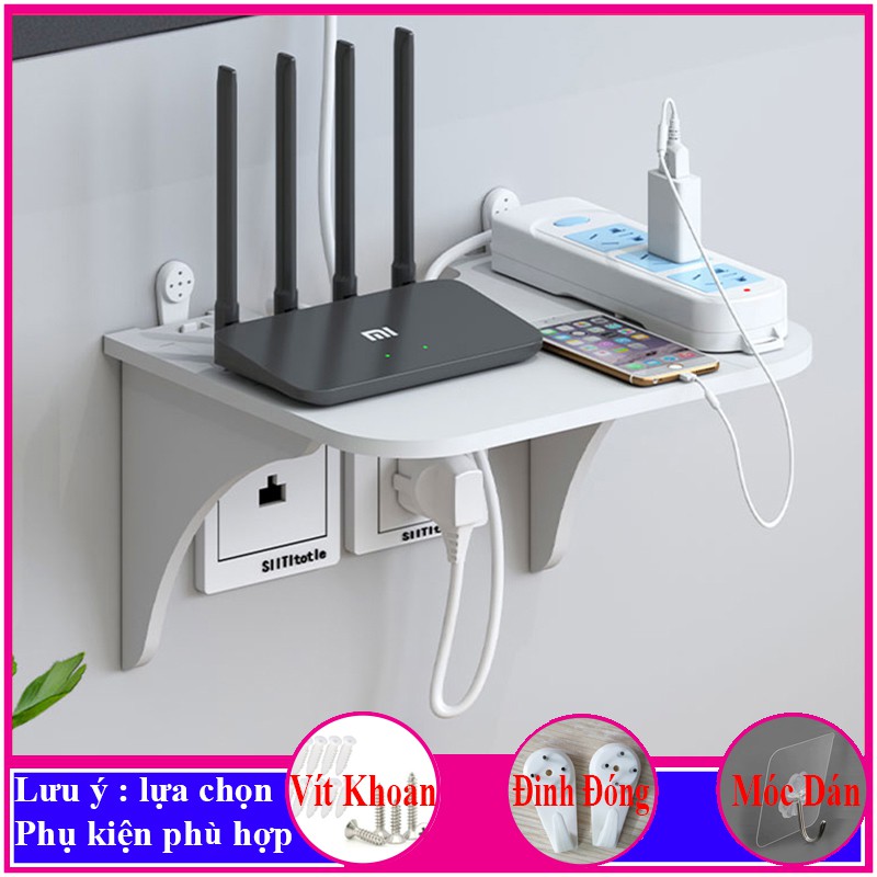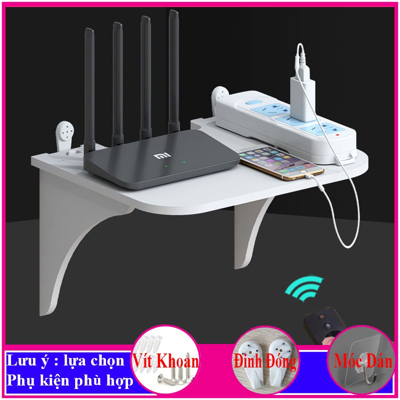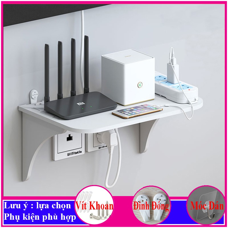 kệ wifi treo tường, giá đỡ máy chiếu, đầu thu kỹ thuật số, điện thoại, remote, ổ cắm điện, 3 chế độ treo - a32