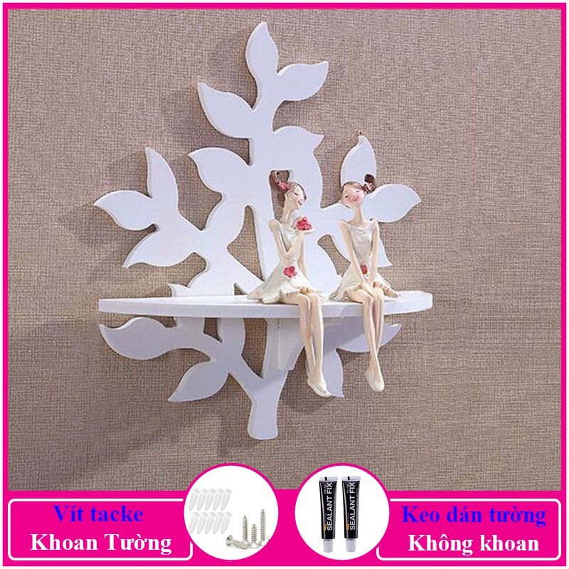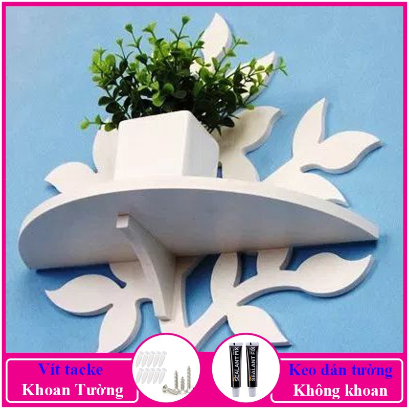 Kệ treo tường trang trí không cần khoan, chất liệu gỗ nhựa cao cấp màu trắng, decor không gian sống - a06