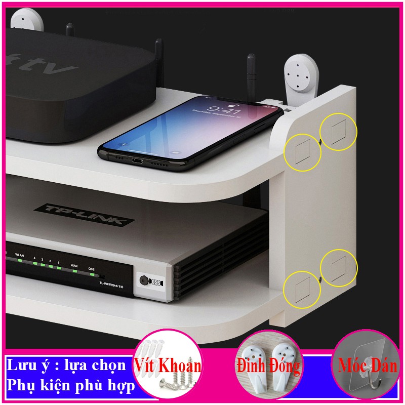Giới thiệu kệ wifi treo tường 2 tầng, kệ trang trí tivi, đặt đầu thu kỹ thuật số, ổ cắm điện, đồ trang trí - a31
