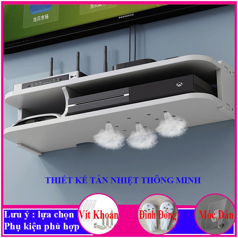 Nhà cửa & Đời sống > Nội thất > Kệ & Giá || Kệ treo tường trang trí không cần khoan, chất liệu gỗ nhựa cao cấp màu trắng, đặt modem wifi - a30Còn hàng