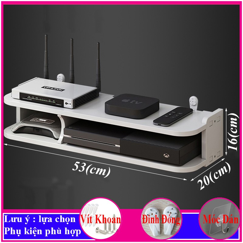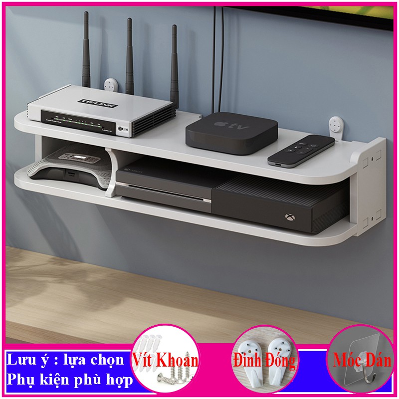 kệ wifi treo tường 2 tầng, giá để modem, đầu thu kỹ thuật số, điện thoại, camera, ổ cắm điện, đồ trang trí -a30