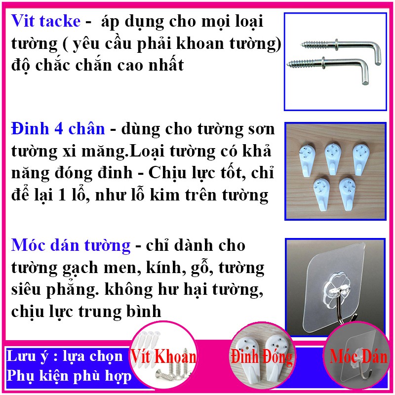 👉 Phụ Kiện Treo: Đinh 4 chân hoặc móc dán tường hoặc Vít Tacke