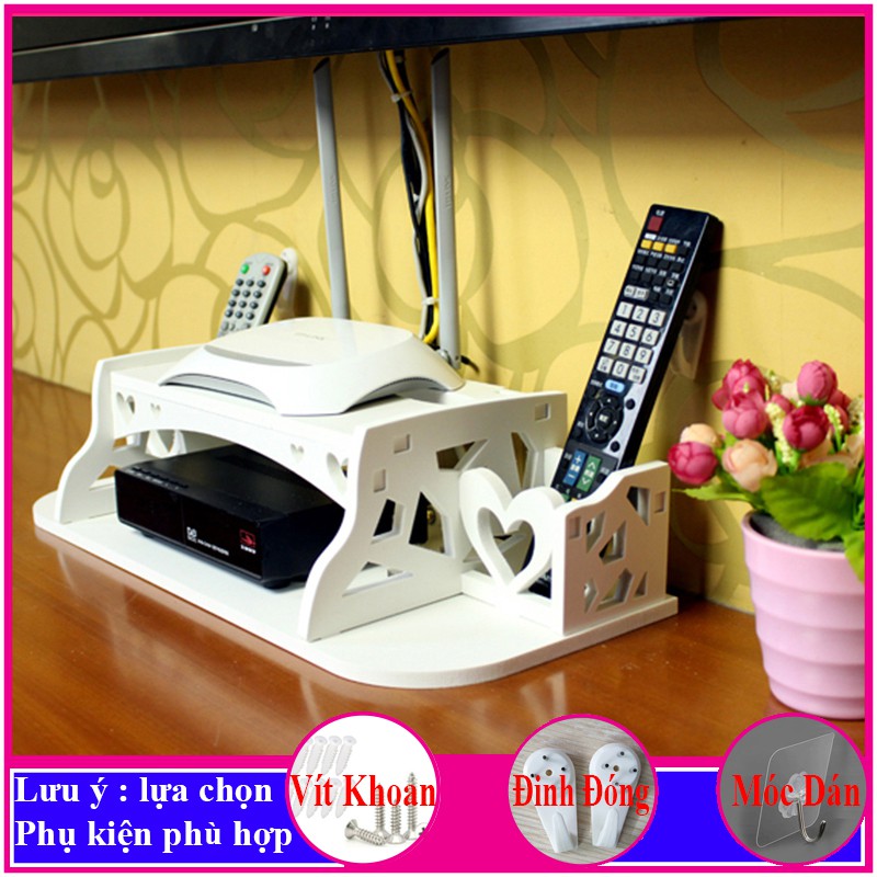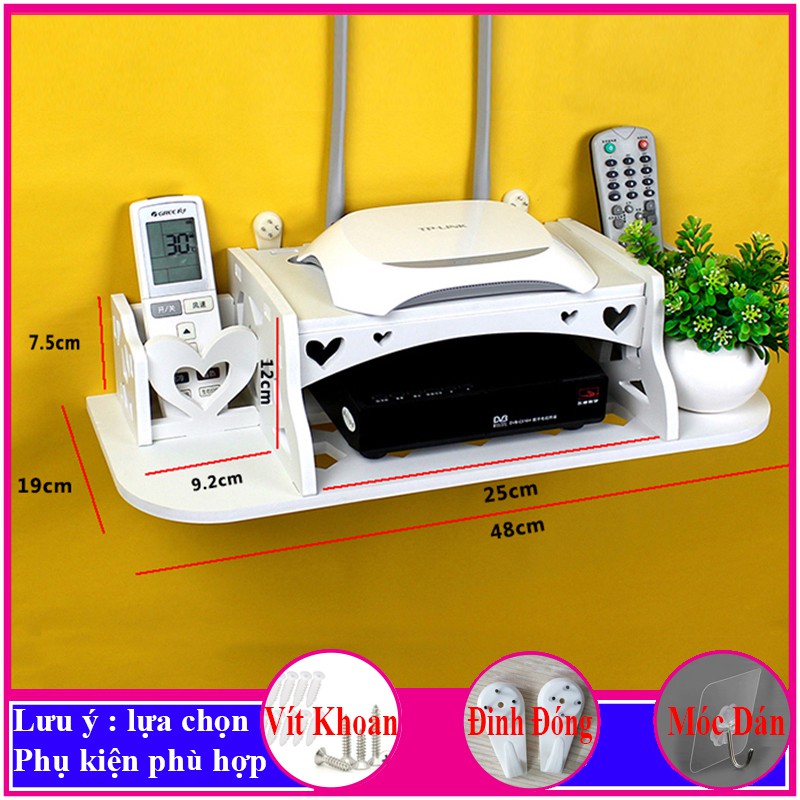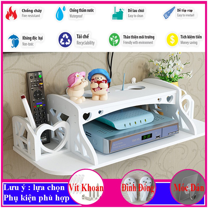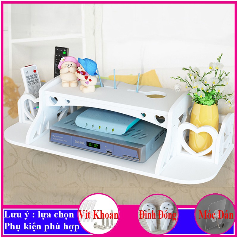 kệ wifi treo tường trang trí, giá để modem, đầu thu kỹ thuật số, điện thoại, remote, ổ cắm điện -a29