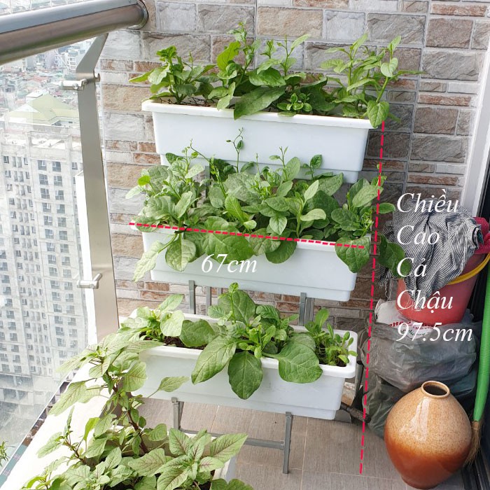 Bạn muốn ban công trồng được rau sạch, hay hoa hơn thế nữa lại muốn trang trí cho ban công có cây xanh. Kệ 3 tầng bậc thang cho chậu 67*24*20cm được ưa chuộng trong nhiêu năm nay.Kệ làm chất liệu Kẽm Bền đẹp, Chắc Chắn, Cứng Cáp, Không một khách nào chê khi nhận kệ bên chúng tôi.