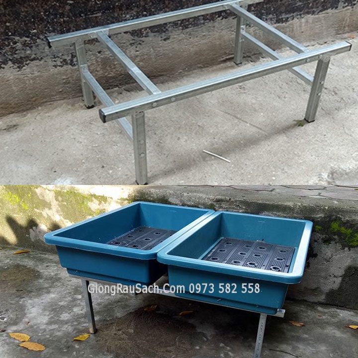 Kệ trồng rau đặt 2 Chậu đại thùng xốp hộp KẼM 20*20mm dày 1.2ly nặng 2.5KG lắp ghép khách có cước vận chuyển rẻ nhất