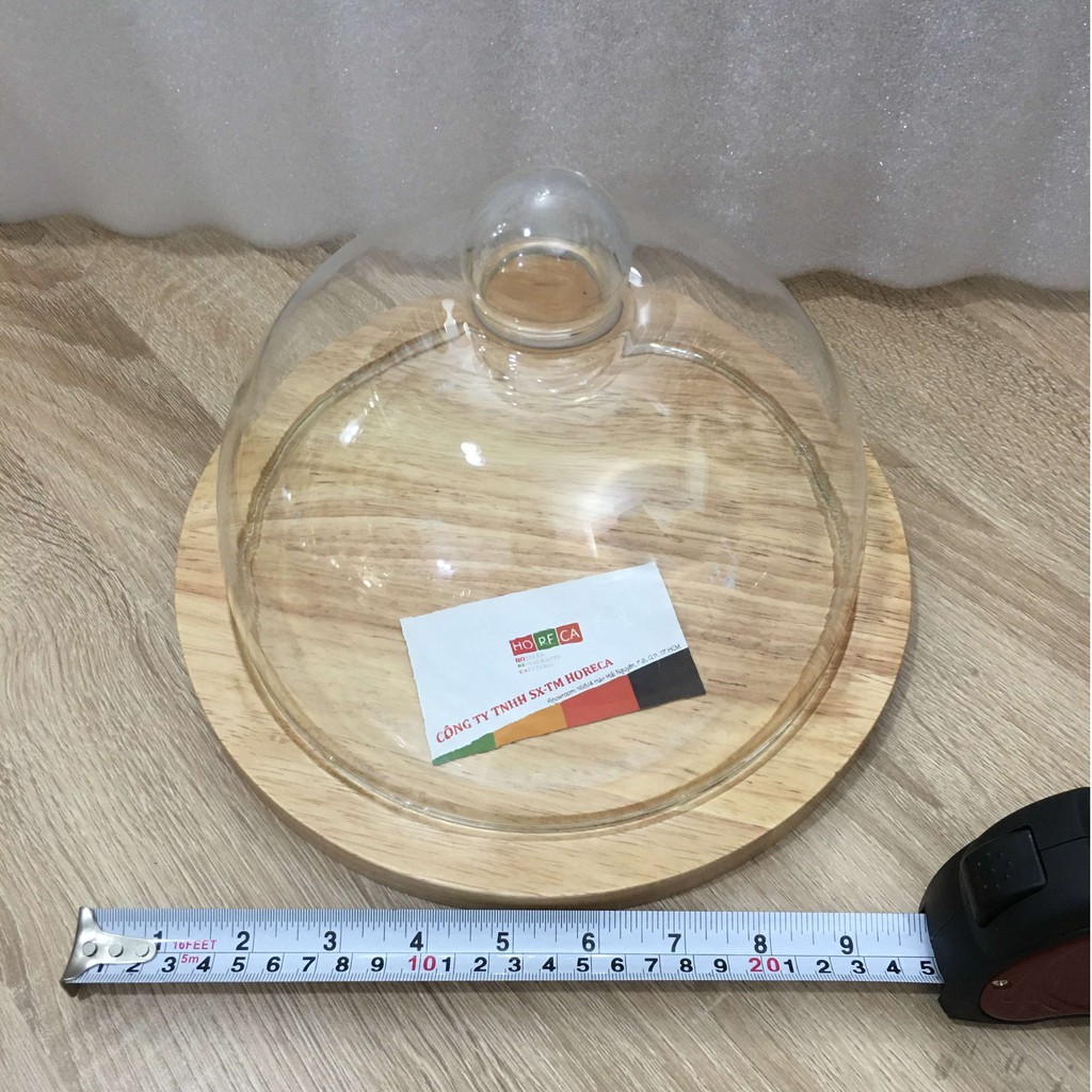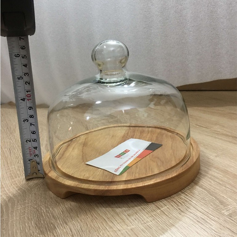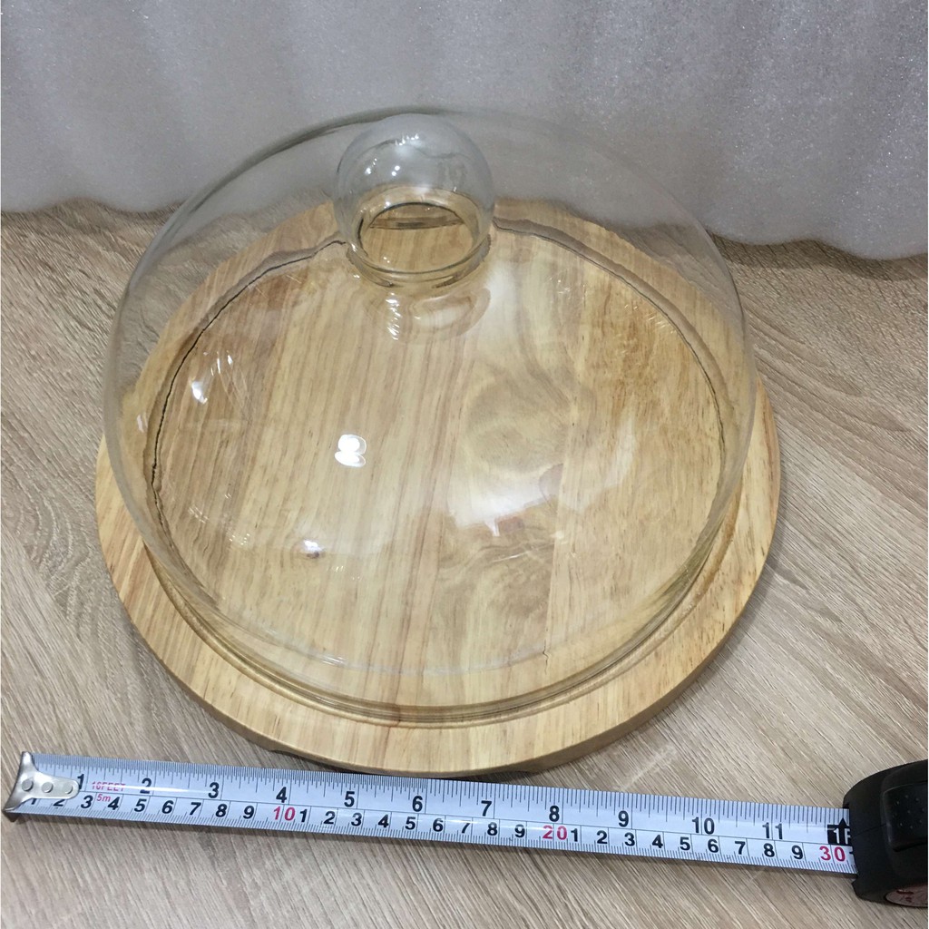 - Chất liệu: nắp thủy tinh + đế gỗ tròn