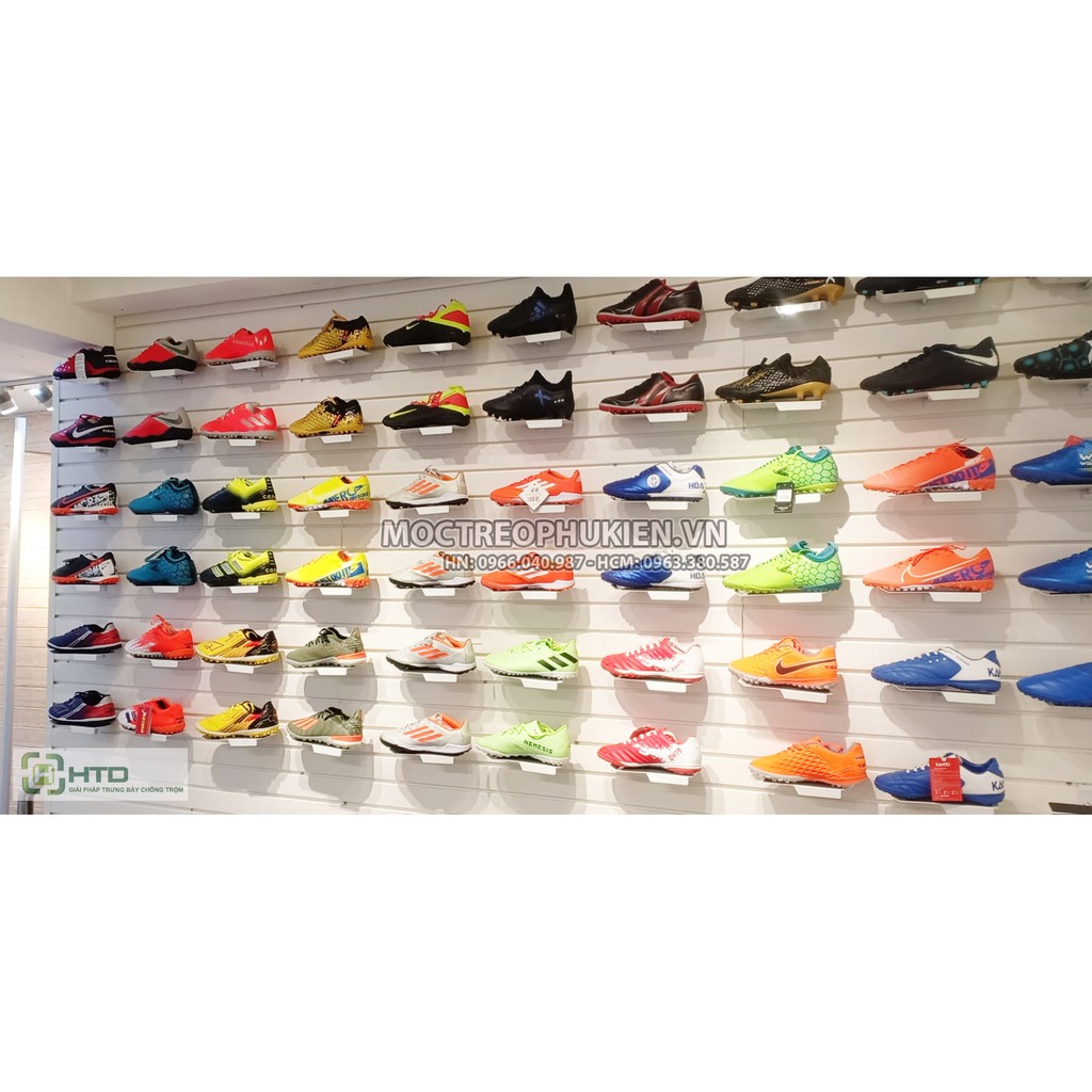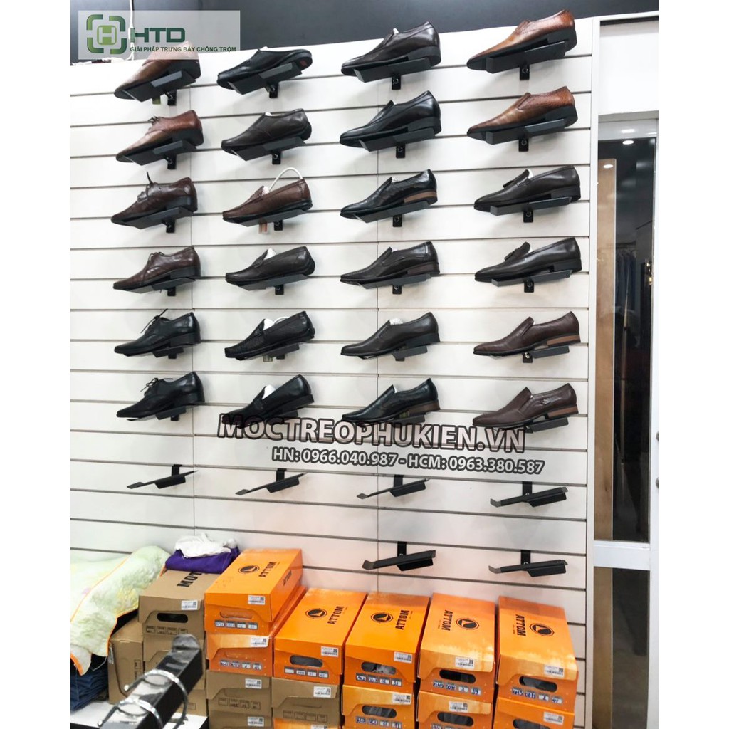 Kệ trưng bày giày dép cài trên vách slatwall pvc dễ dàng di chuyển vị trí