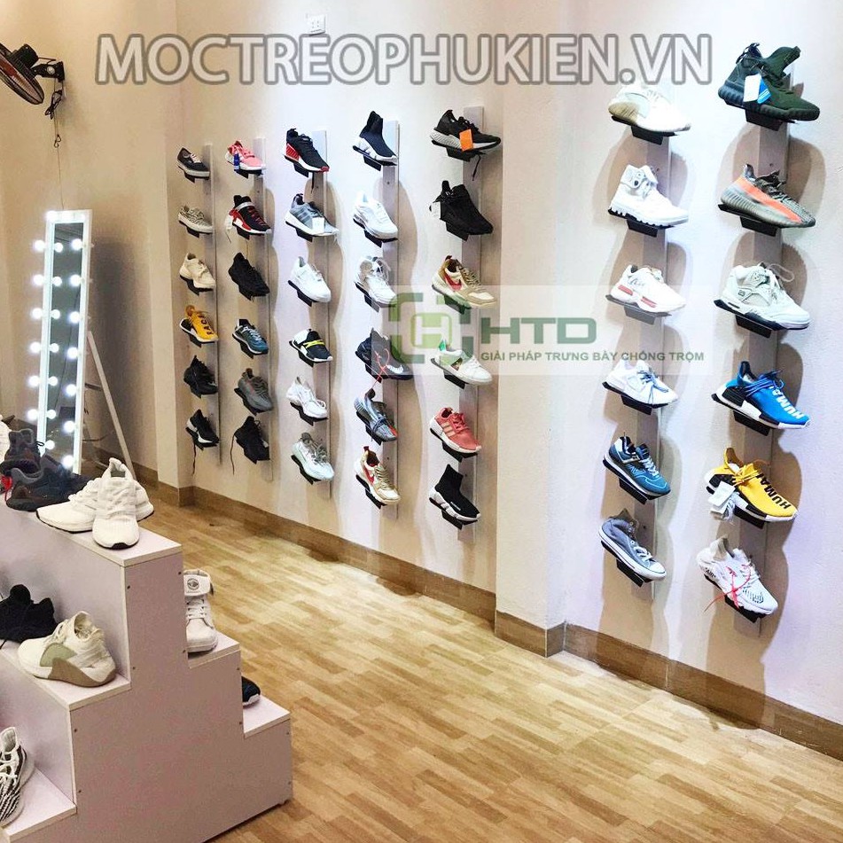 ✔ Bạn không phải tốn thời gian suy nghĩ trưng bày sản phẩm giày dép của mình như thế nào cho hợp lý. Chỉ cần gián tường xong và bắn trực tiếp kệ treo giày dép của chúng tôi lên tường sau đó trưng bày, sắp xếp sản phẩm một cách hợp lý là bạn đã có một cửa hàng với giá treo giày dép như ý muốn