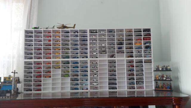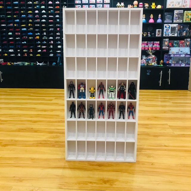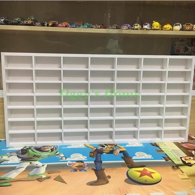 - Mỗi kệ gồm 49 ô ( các thanh dọc ngang có thể tháo rời để trưng được các kích cỡ xe hoặc đồ chơi khác rất linh hoạt )
