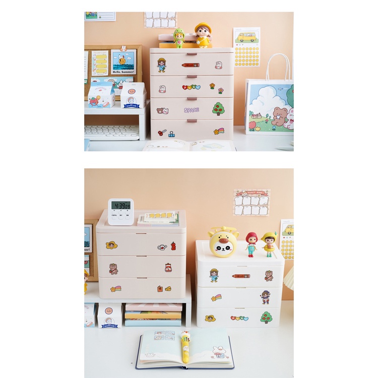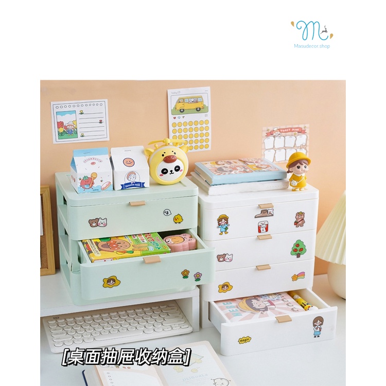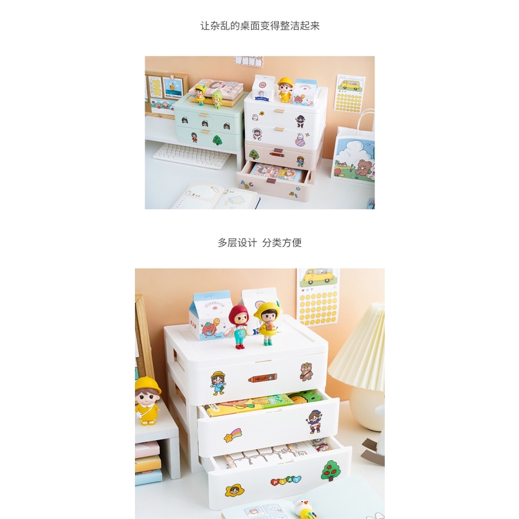 Kệ tủ 2 tầng có ngăn kéo đựng văn phòng phẩm + tặng sticker decor kệ