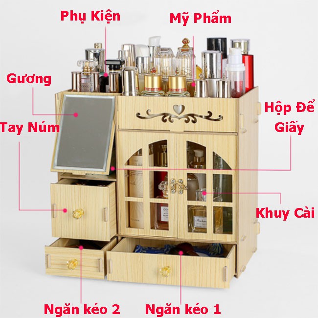 Thiết kế nhiều ngăn nhỏ tiện dụng theo phong cách hiện đại với tính thẩm mỹ cao lắp ráp và tháo dỡ đơn giản gọn nhẹ phù hợp với mọi kiểu không gian phòng ngủ, phòng trang điểm hay các salon trang điểm chuyên nghiệp có hướng dẫn sử dụng tháo lắp ,bạn có thể mang đi bất cứ đâu nếu bạn muốn