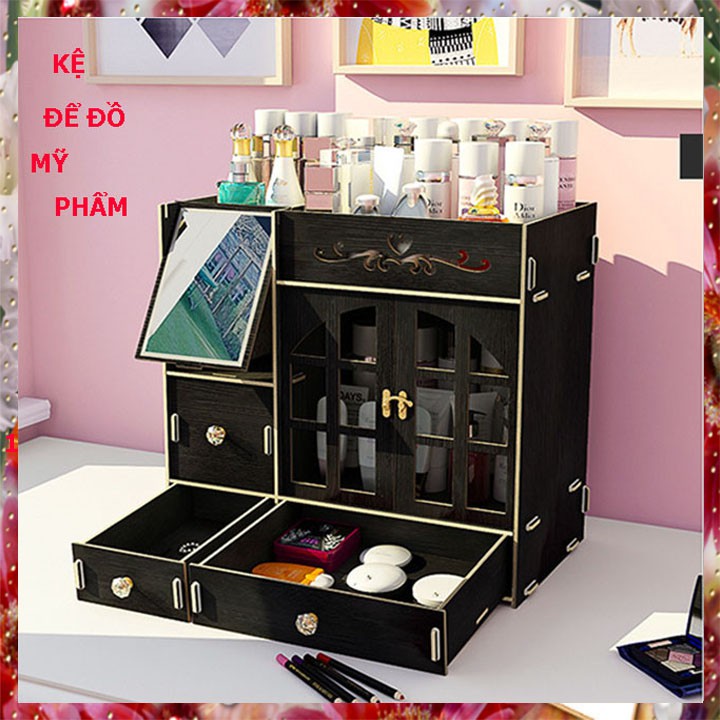 KỆ TỦ ĐỰNG MỸ PHẨM CÓ GƯƠNG BẰNG GỖ HÀNG MỚI