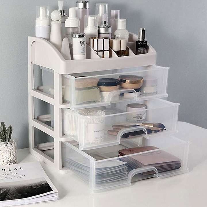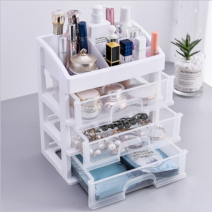 + Đặc biệt với thiết kế nhựa trong suốt sẽ giúp cho bạn tìm các vật dụng dễ dàng và nhanh chóng. Không những bạn có thể để đồ trang điểm mà còn các đồ trang sức của mình đều rất tiện dụng và hợp lý